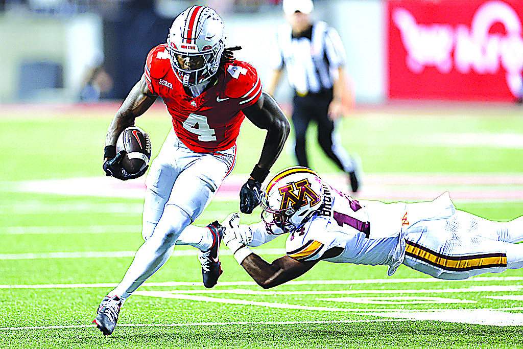 Day appeared to soften his stance a couple of weeks later to make room for one more Ohio State receiver after Carnell Tate scored two touchdowns in the top-ranked Buckeyes’ 34-0 victory over Wisconsin, including a spectacular 33-yard grab between two defenders in which he hung onto the ball despite losing his helmet while landing.