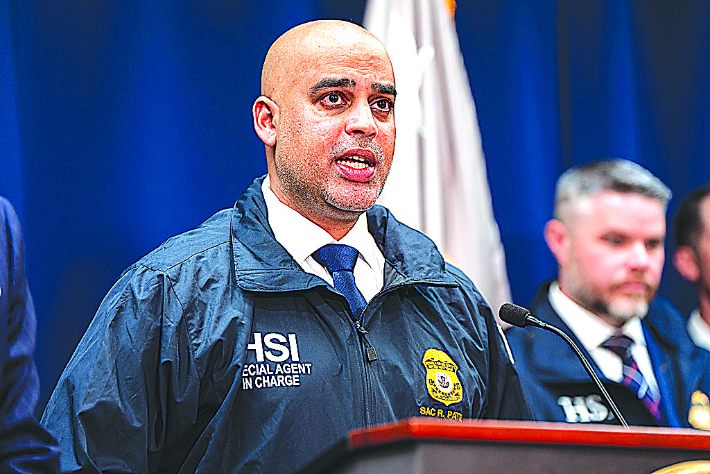 Homeland Security Investigations New York Special Agent in Charge Ricky J. Patel speaks at a news conference announcing numerous arrests in illegal sports betting and poker game schemes at the U.S. Attorney's Office, Thursday, Oct. 23, 2025, in New York. (AP Photo/Angelina Katsanis)