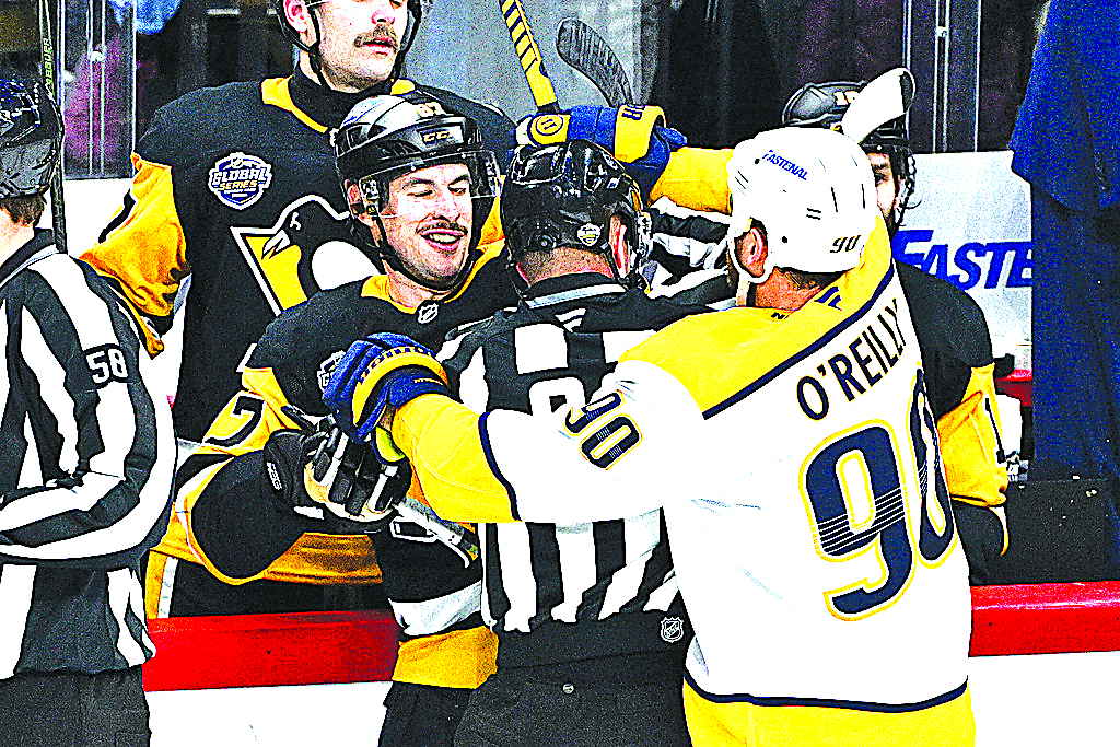 STOCKHOLM (AP) — Sidney Crosby and Evgeni Malkin scored a little over two minutes apart in the first period to help the Pittsburgh Penguins beat the Nashville Predators 4-0 on Sunday to split their NHL’s Global Series in Sweden’s capital.