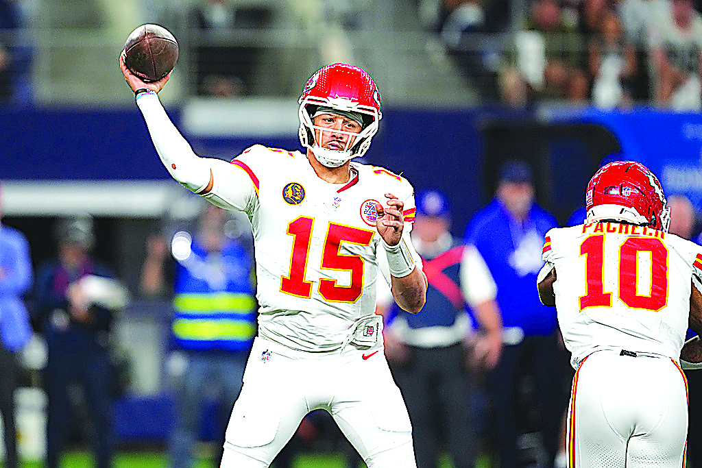 Mahomes had four touchdown passes in his first professional game at the home of the Cowboys, where he played three times for Texas Tech not far from his East Texas roots.