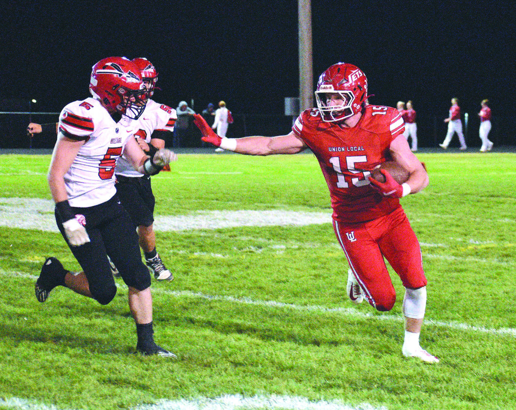Photo by Kim North Union Local’s Brody Perzanowski (15) stiff arms a Bellaire defender during a game earlier this season. The Jets travel to Nelsonville-York on Friday. Whg cutline Photo by Kim North Union Local’s Rydder Gainer (20) runs with the ball after taking a handoff from quarterback Colby Carpenter during a regular season game this year. The Jets travel to Nelsonville-York on Friday. Union Local Knows The Way, How To Win At Nelsonville-York