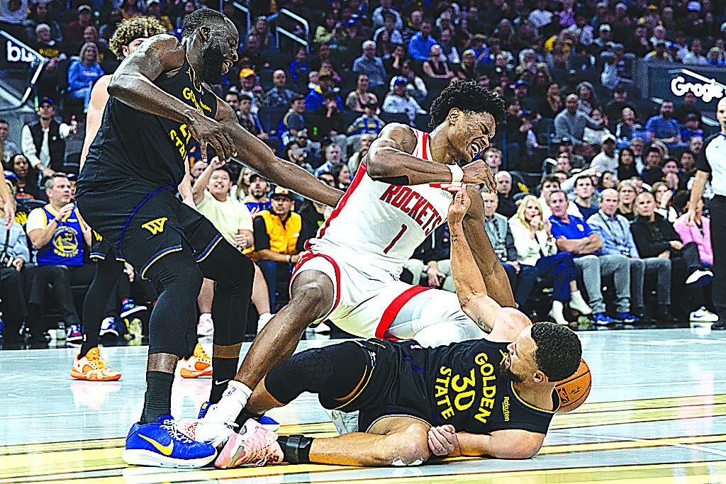The 37-year-old Curry, in his 17th NBA season, and Houston’s Amen Thompson went down hard under the basket with 3:24 remaining and the game tied at 91 after Thompson’s drive to the hoop, which initially was whistled an offensive foul. Houston challenged and the call was overturned to a block by Curry — who grimaced in pain on the floor. He limped to the locker room with 35.2 seconds left.
