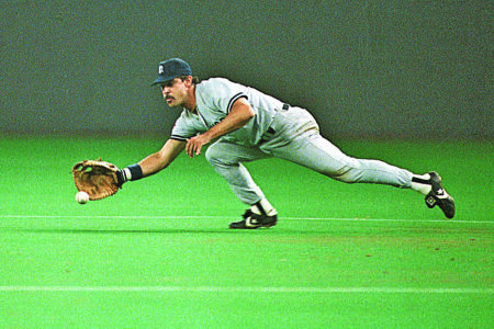 - FILE – Don Mattingly, New York Yankees infielder, snags a grounder from Pittsburgh’s Andy Van Slyke during seventh inning of Tuesday night’s All-Star game at Riverfront Stadium in Cincinnati, Ohio, July 12, 1988. (AP Photo/Ed Reinke, File)