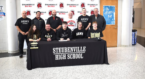 EPIC Restoration is the Buckeye 8 Challenge title sponsor for the second consecutive year. Pictured, in front is Kam Clifford. Standing, from left, are Martins Ferry girls’ basketball players Savanah Koller, Maddie Clark, Charlie Roe, Alivia Reese and Giana Chirpas; St. Clairsville Athletic Director Justin Clifford; EPIC Restoration’s Chris Fogle; and St. Clairsville’s boys’ basketball players Niko Jacob, Ollie Muhley, Kaden Clifford, Griffin Straub and Derek Panepucci. Martins Ferry opens the two-day event against Waterford at 7 p.m. Dec. 19, while St. Clairsville meets Northridge at 1:30 p.m. Dec. 20 in varsity action. Morgantown and Peters Township meet in a girls game on Dec. 20 at 3:15 p.m., to be followed by a boys’ matchup between Philo and Martins Ferry at 4:45. The event closes out with Wheeling Central and Waverly boys at 6:30. “EPIC Restoration serving our community is part of what we do. We’re excited to once again sponsor the Buckeye 8 Challenge this year and cheer on the student-athletes,” Fogle said.