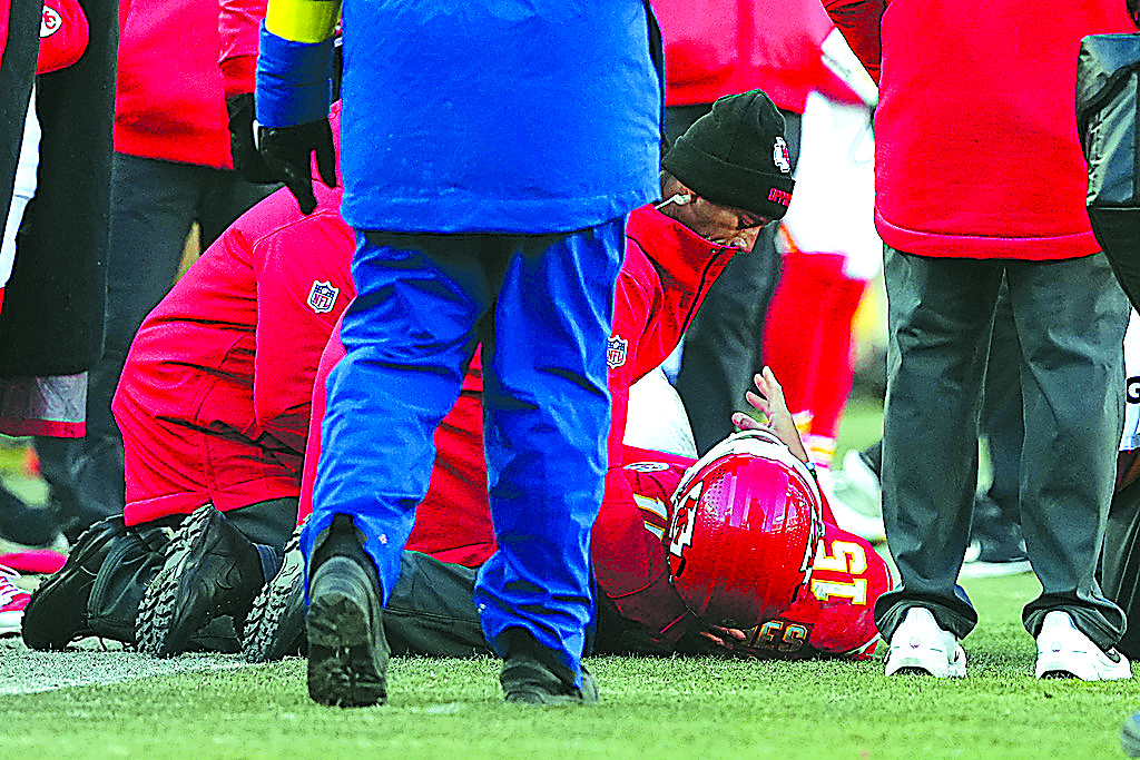 KANSAS CITY, Mo. (AP) — The final images of the Kansas City Chiefs’ postseason pursuit turned out to be Patrick Mahomes getting helped to the locker room, a white towel draped over his head, and backup quarterback Gardner Minshew throwing an interception to Derwin James that gave the Los Angeles Chargers a win over one of their biggest rivals.