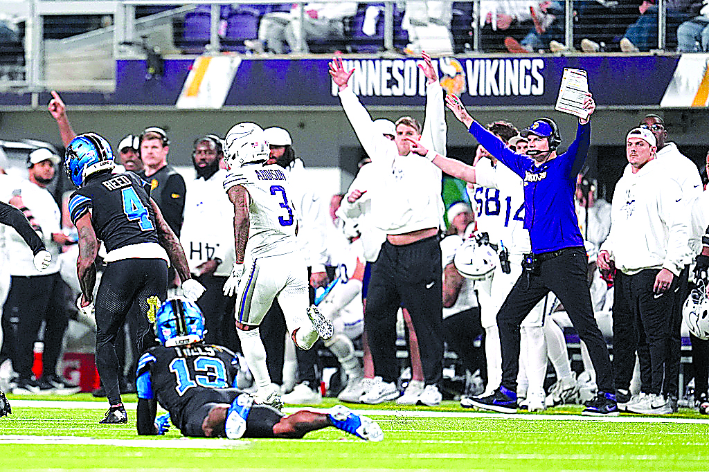 MINNEAPOLIS (AP) — Jordan Addison took a jet sweep handoff 65 yards for the game-sealing touchdown with 3:43 left after the Minnesota Vikings forced six turnovers and eliminated the Detroit Lions from contention for the playoffs with a 23-10 victory on Thursday.