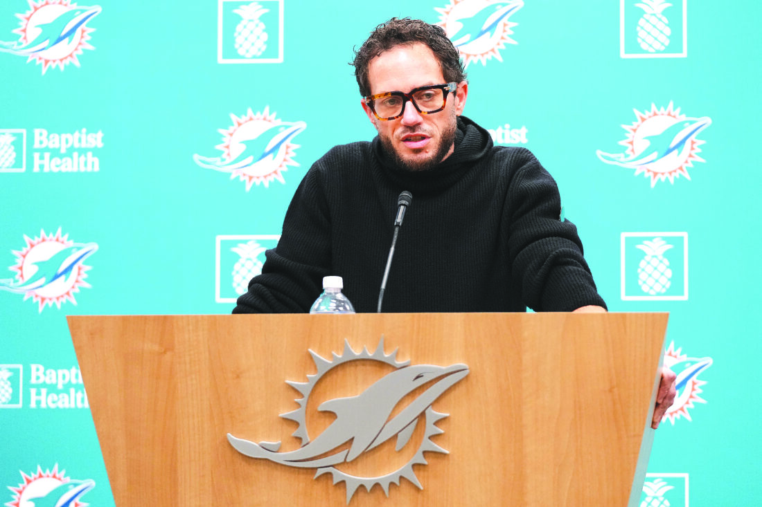 Miami Dolphins head coach Mike McDaniel responds to a question during an end-of-season NFL football news conference, Monday, Jan. 5, 2026, in Miami Gardens, Fla. (AP Photo/Lynne Sladky)