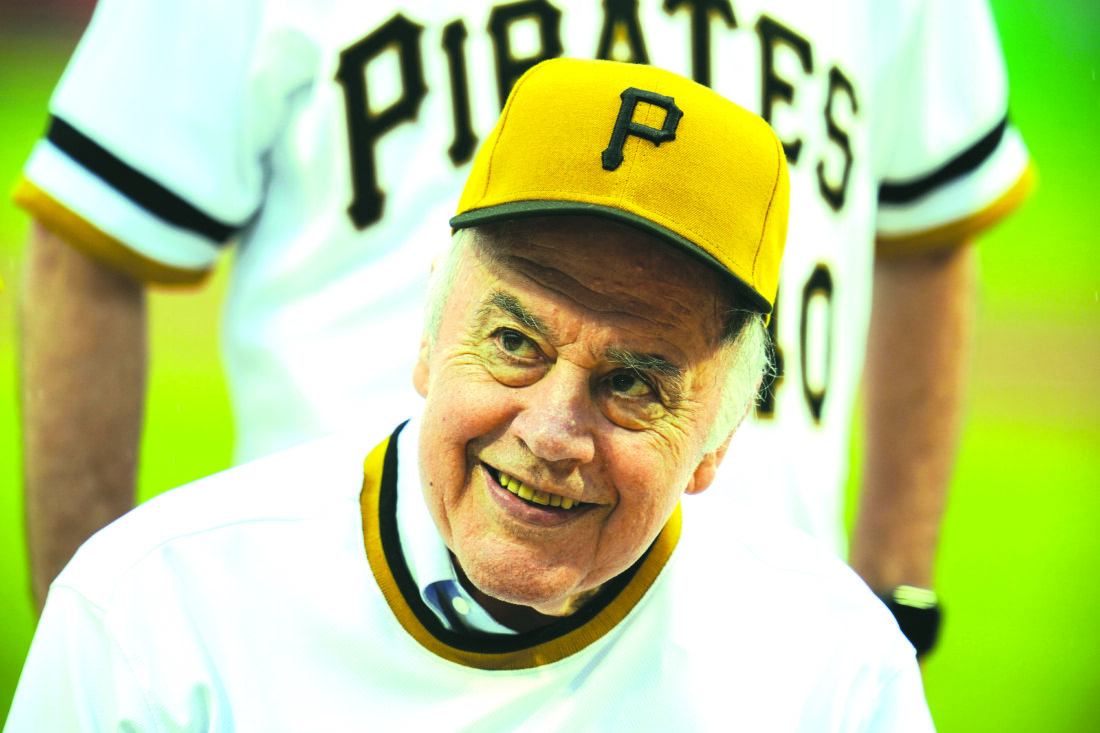 FILE - Pitcher Dave Giusti, a member of the 1971 World Champion Pittsburgh Pirates, takes part in a celebration of the 50th anniversary of the championship season before of a baseball game between the Pittsburgh Pirates and the New York Mets in Pittsburgh, July 17, 2021. (AP Photo/Gene J. Puskar, File)