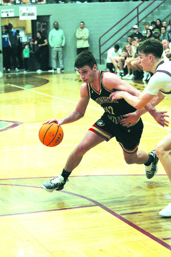 Sancomb scored seven straight points midway through the second quarter and followed that up with a slick assist to Max Olejasz to put Central ahead 32-21 with 3:37 to play in the second. While the Maroon caught fire on offense, there was a lid on the hoop on the other end, where Monroe Central couldn’t hit despite finding good looks along the perimeter.