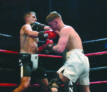 - Cameron’s Ashton “Boss Hoss” Hoge, right, lands a punch to the chin of Brandon Barber during their middleweight fight. Hoge, a two-time runnerup, won by close, unanimous decision. Action resumes again Saturday night with the first bell at 7. Champions will be crowned in 10 weight divisions — five female and five male — as well as the top Ring Girl.