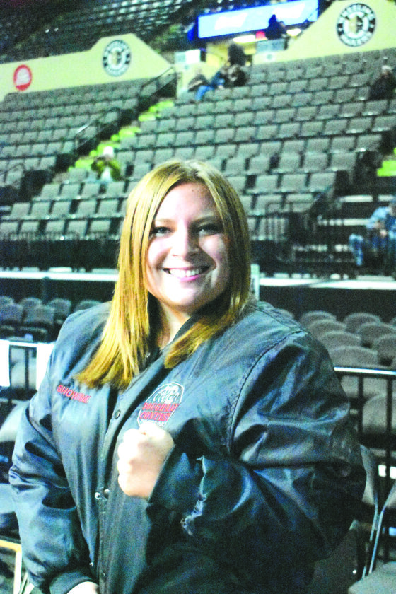Photo by Kim North Union Local graduate and three-time Ohio Valley Toughwoman Contest champion Kamron Chervanek has worked her way up to being a West Virginia- and Pennsylvania-certified boxing judge. She was one of three working the 45th annual Ohio Valley Toughman Contest Friday night inside downtown Wheeling’s WesBanco Arena.