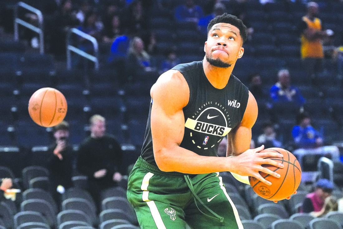 FILE - Milwaukee Bucks forward Giannis Antetokounmpo warms up before an NBA basketball game against the Golden State Warriors in San Francisco, Jan. 7, 2026. (AP Photo/Jeff Chiu, File)