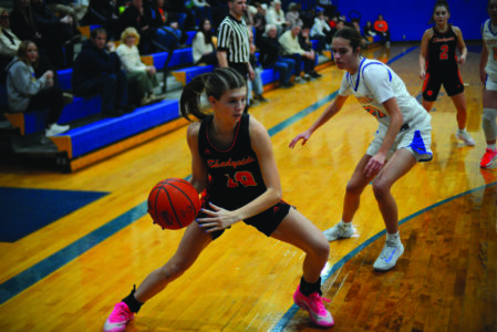 Photo by Andrew Grimm Shadyside’s Jaylynne Johnson works to the paint past Steubenville Catholic’s Shya Garcia