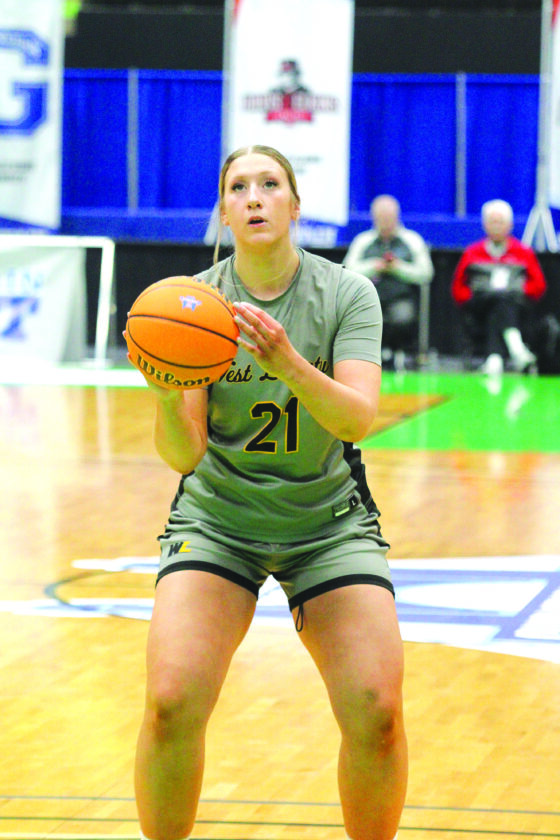 Photo by Nick Henthorn West Liberty’s Reagan Vinskovich readies a free throw Thursday during the Hilltoppers’ MEC Tournament quarterfinal against Glenville State.