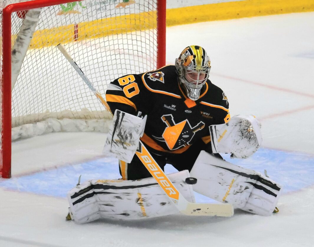 Photo by Joe Lovell Wheeling's Gabriel D'Aigle made his professional debut Tuesday against the Cincinnati Cyclones inside WesBanco Arena.