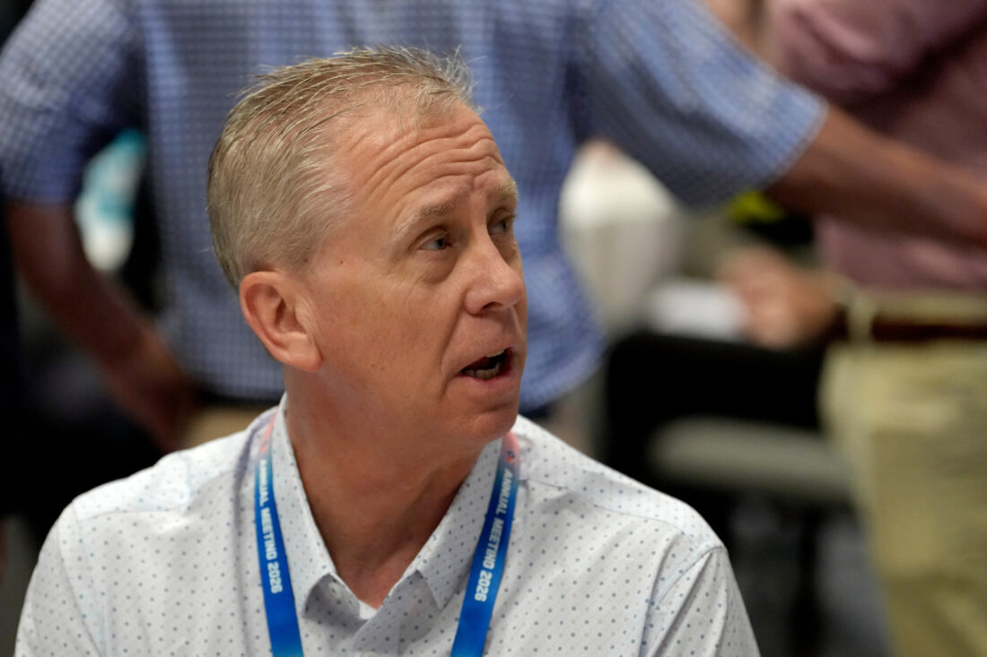 Cleveland Browns head coach Todd Monken speaks to reporters at the NFL football annual meetings, Tuesday, March 31, 2026, in Phoenix. (AP Photo/Ross D. Franklin)