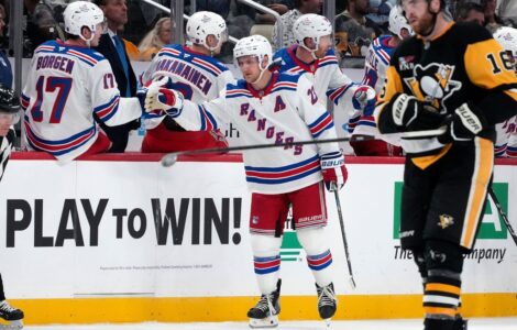 PITTSBURGH (AP) — Adam Fox scored twice and added an assist as the New York Rangers beat the Penguins 6-1 on Saturday night to give new coach Mike Sullivan a victory in his return to Pittsburgh.