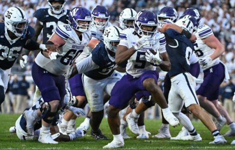 STATE COLLEGE, Pa. (AP) — Caleb Komolafe ran for 72 yards and a touchdown and Northwestern held on to beat Penn State 22-21 on Saturday.