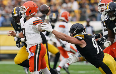 PITTSBURGH (AP) — Making his second start, Cleveland Browns rookie quarterback Dillon Gabriel got harassed by the Pittsburgh Steelers.