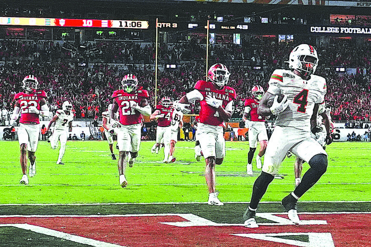 MIAMI GARDENS, Fla. (AP) — Fernando Mendoza bulldozed his way into the end zone and Indiana bullied its way into the history books Monday night, toppling Miami 27-21 to put the finishing touch on a rags-to-riches story, an undefeated season and the national title.