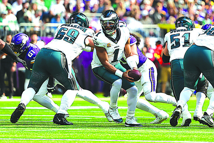 PHILADELPHIA (AP) — Jalen Hurts emptied some frustration as he walked into the Eagles’ locker room after he gave his lagging offense a jolt by throwing for 326 yards in a win over Minnesota.