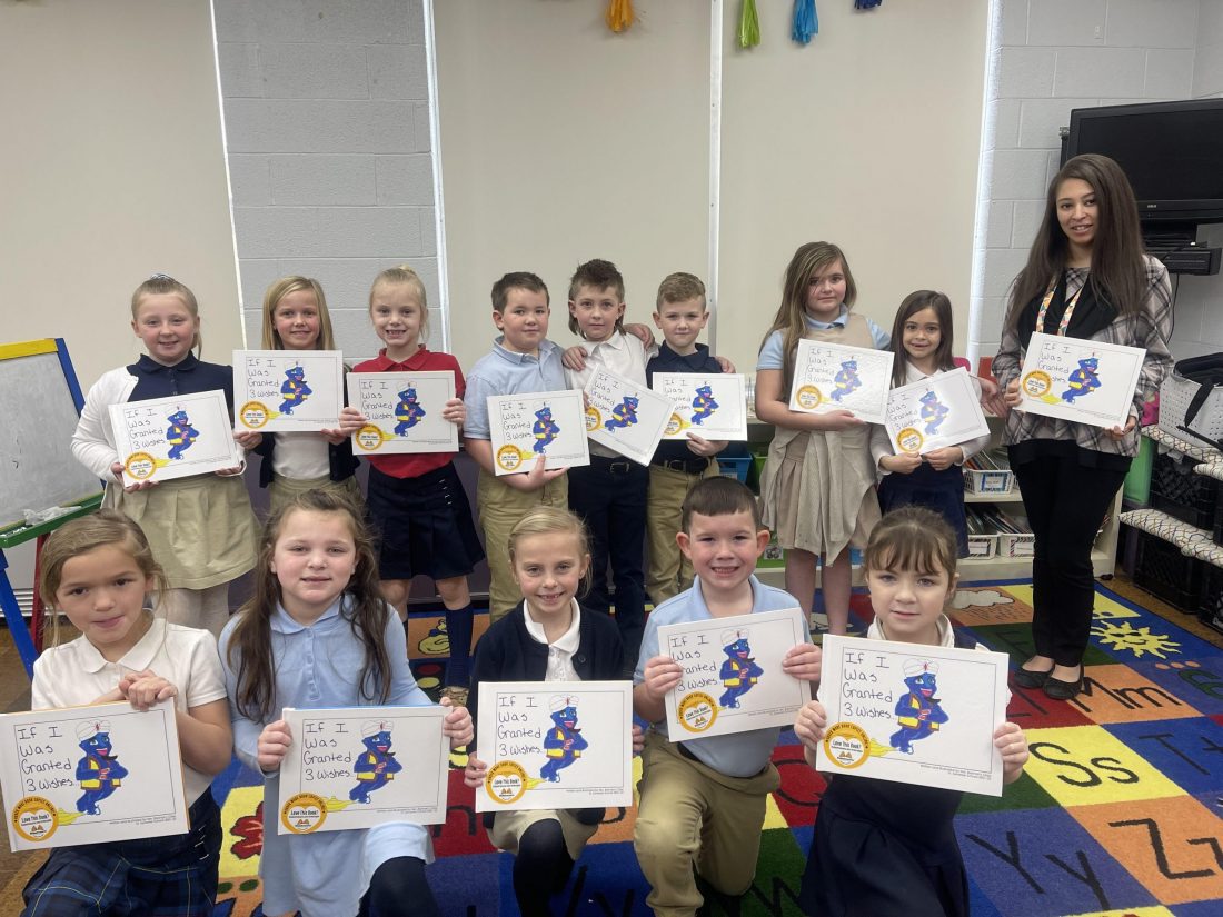 As part of the publishing process, students in teacher Vivica Bannan’s first grade class planned, wrote and illustrated their own books using a free publishing kit provided by Studentreasures Publishing. The topic of their books was “If I Was Granted 3 Wishes.”