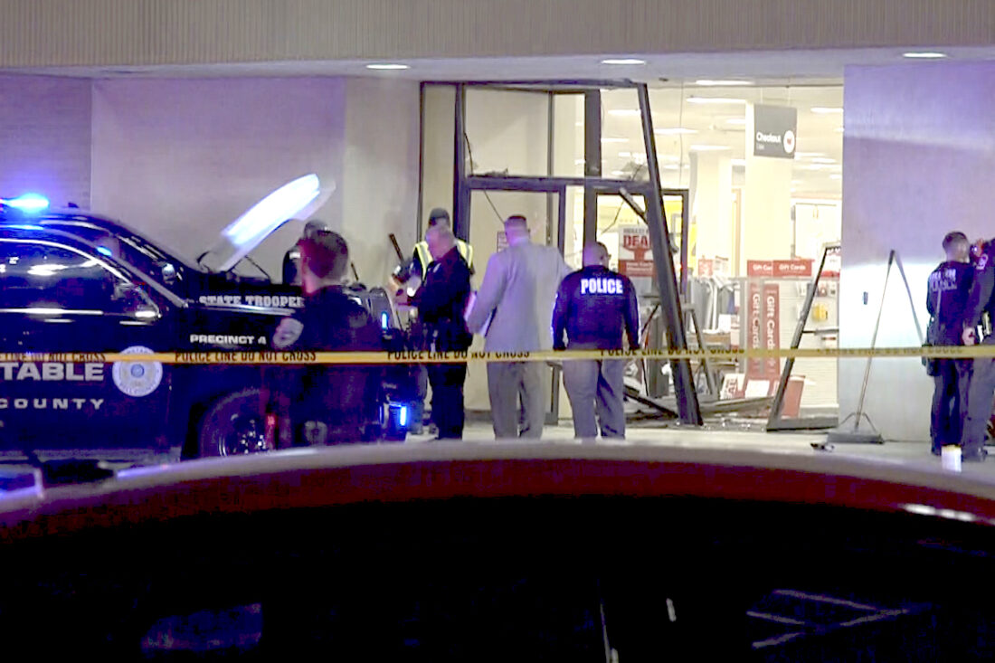 KILLEEN, Texas (AP) — A pickup truck driver fleeing police careened through the doors of a JCPenney store at a busy Texas mall, injuring five people before he was fatally shot by officers, authorities said.