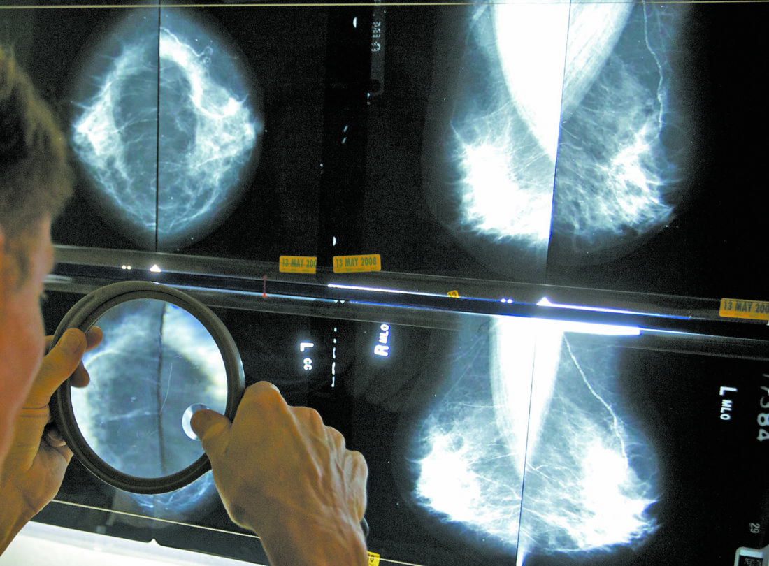 FILE - A radiologist uses a magnifying glass to check mammograms for breast cancer in Los Angeles, May 6, 2010. (AP Photo/Damian Dovarganes, File)