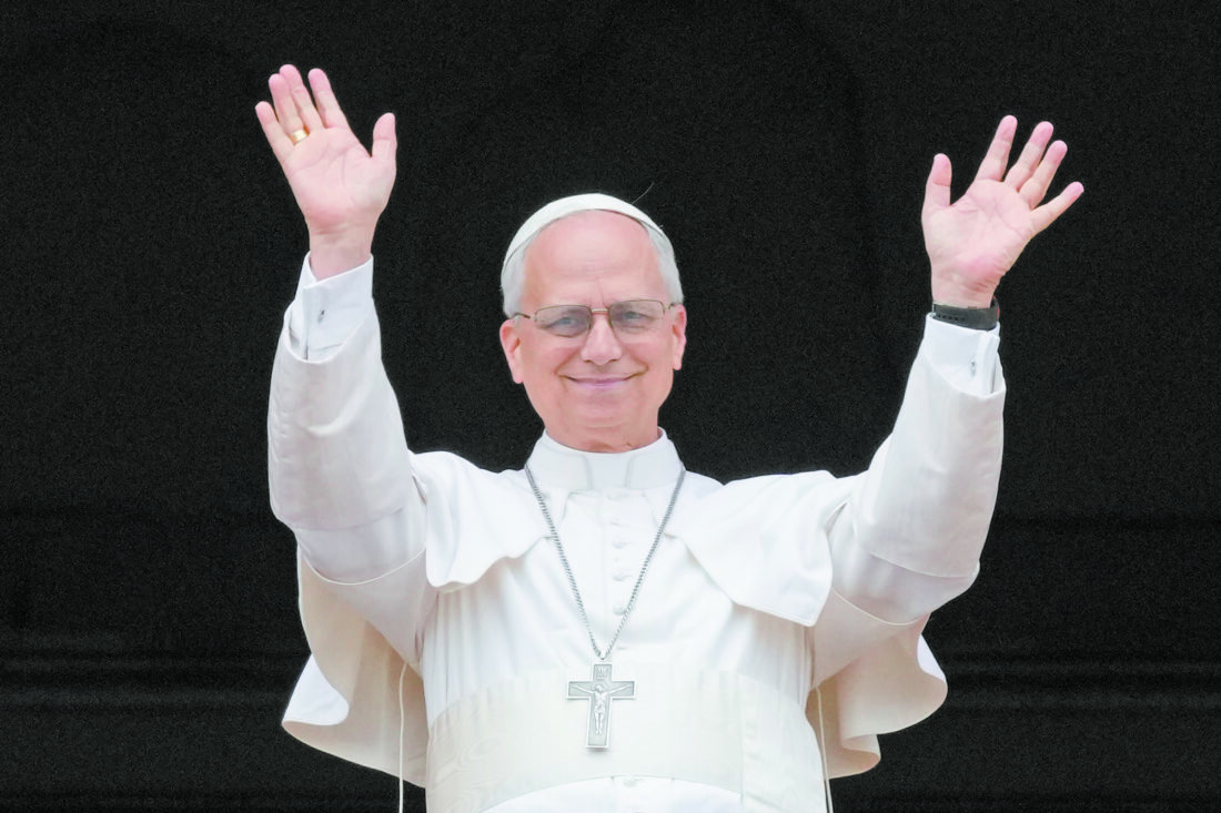 Pope Leo XIV appears at the central balcony of St. Peter's Basilica for his first Sunday blessing after his election, in St. Peter's Square at the Vatican, Sunday, May 11, 2025.(AP Photo/Gregorio Borgia)