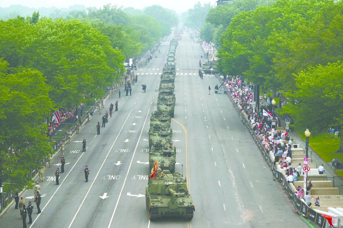 A military parade commemorating the Army's 250th anniversary and coinciding with President Donald Trump's 79th birthday, Saturday, June 14, 2025, in Washington. (AP Photo/Jacquelyn Martin)