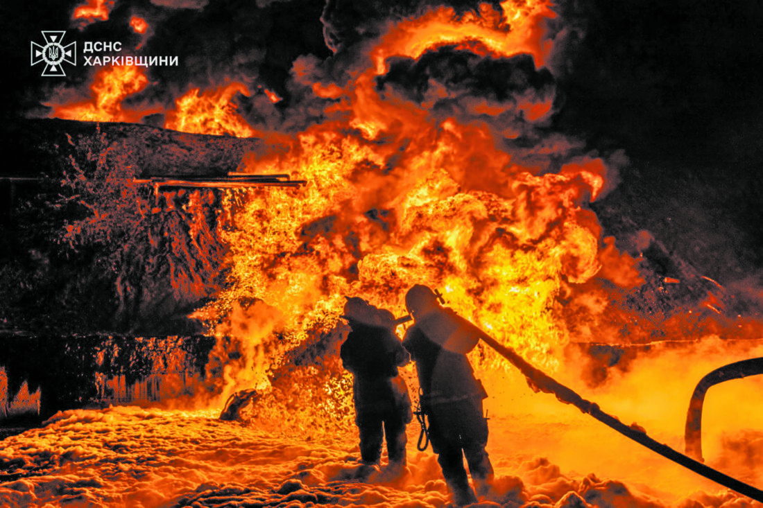 FILE - In this photo provided by the Ukrainian Emergency Service, emergency services personnel work to extinguish a fire following a Russian attack in Kharkiv region, Ukraine, July 5, 2025. (Ukrainian Emergency Service via AP, file)