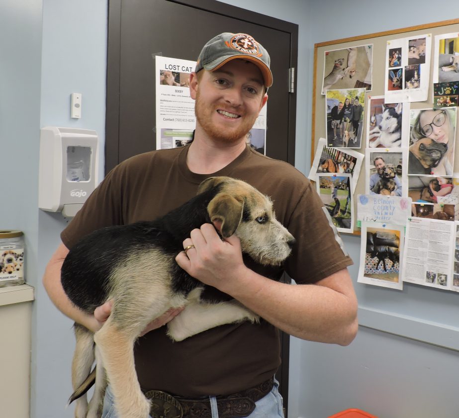 T-L Photo/CARRI GRAHAM Anthony Ritz, assistant dog warden at the Belmont County Animal Shelter, holds 6-month-old Jewelz, a dog at the shelter who recently became available for adoption.