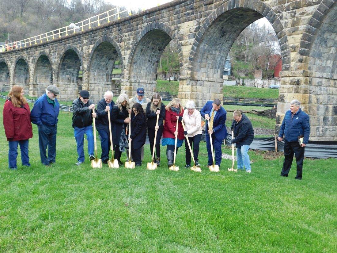 BELLAIRE — The first shovelfuls of dirt in a long-awaited project were turned during a groundbreaking ceremony for the Great Stone Viaduct preservation walkway Tuesday.